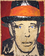 The Shaman, Joseph Beuys fresco portrait. Fresco on wooden panel Cm. 130 x 160 The altar, cm 220 x 100 x 70 Feaux pietra serena