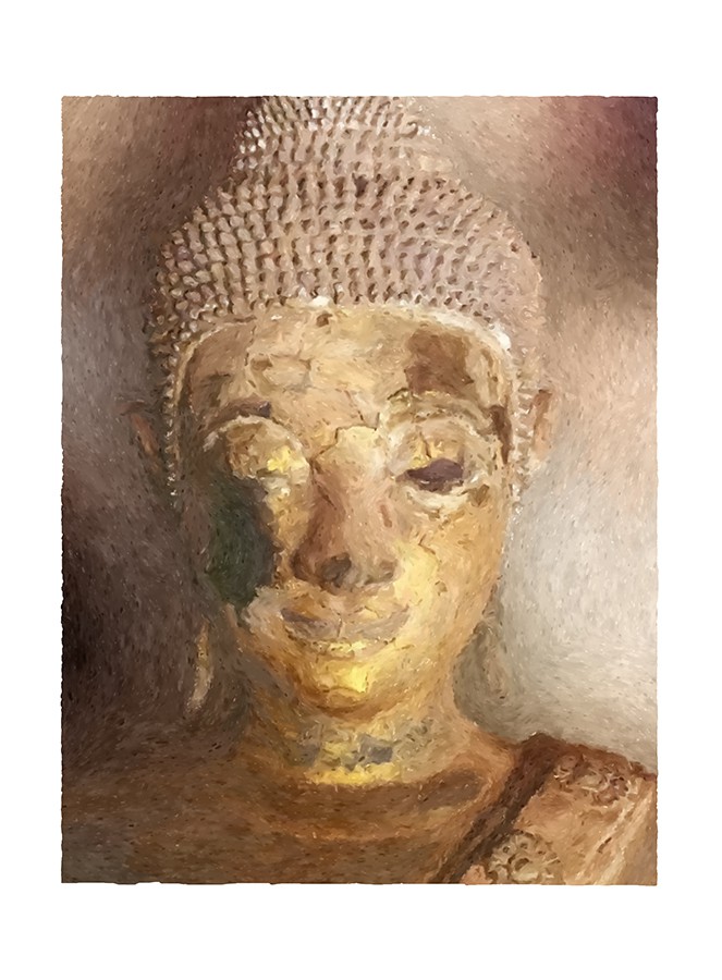 Buddha’s Smile is a series of fine art prints inspired by Buddhas’ statues in temples of Laos. Print size cm. 76 x56. Paper size cm76 x 56. Edition 10 + 2 artist proof. For sale from n. 03 to 10. Printed on AQUARELLE ARCHES paper Grain Torchon 310 gsm. 100% cotton. Acid - free Euro. 500,00. Shipping included. Each print is nicely packed in an elegant folder and can be shipped as present. For orders & enquiries regarding available print editions, please contact: fabruggiero@gmail.com (double click on a thumb to enlarge it) |